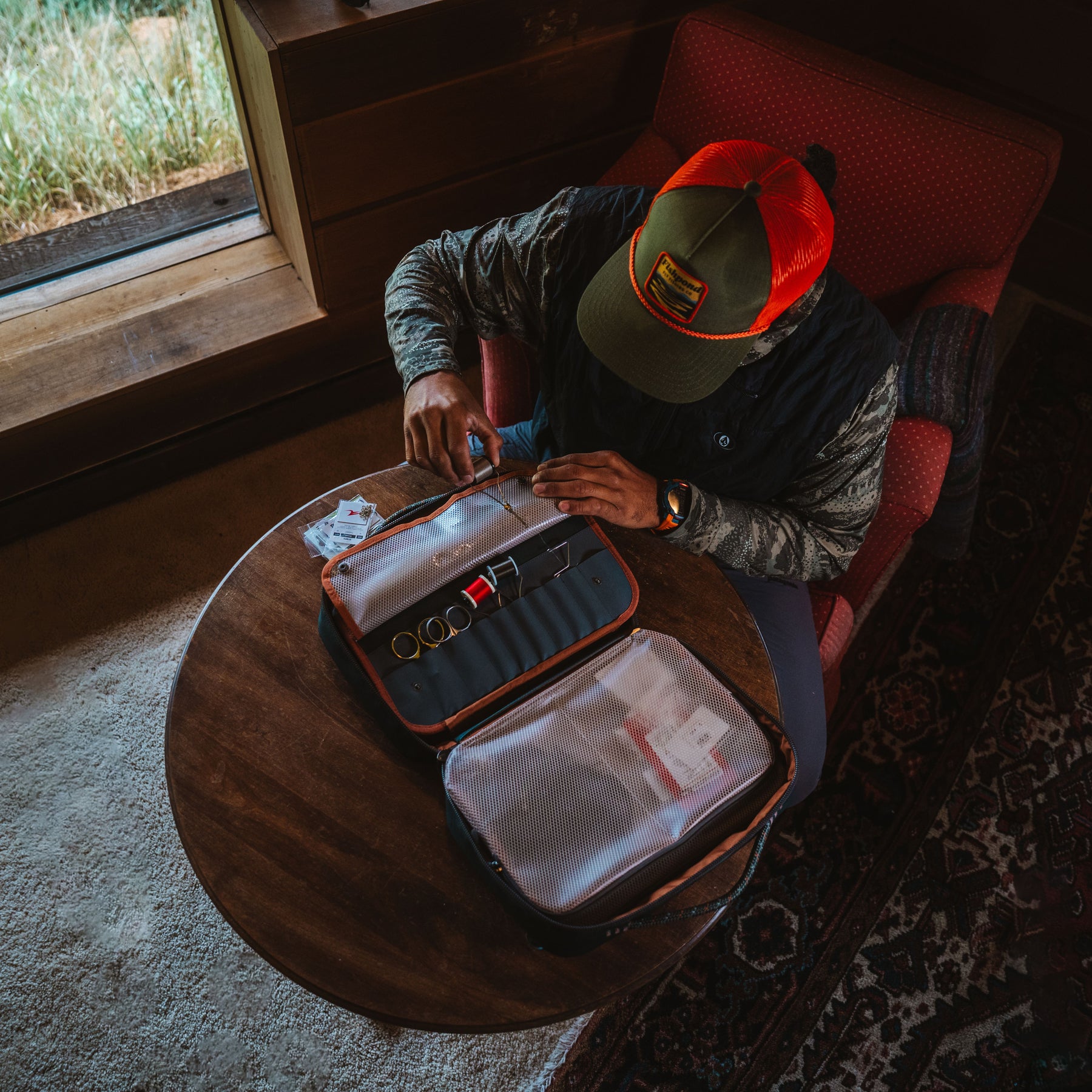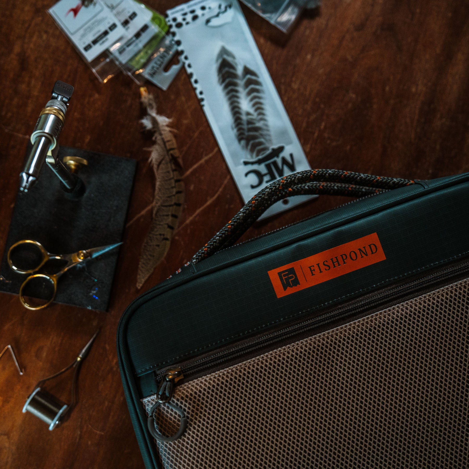 The Backwater Fly Tying Kit packs smart organization into a compact footprint that slips easily into carry-on or checked luggage. Two large see-through pouches keep materials visible and tidy, while a padded interior pocket with a stretch sleeve secures your pedestal base and vise heads. A streamlined hypalon tool page offers quick access to everyday essentials without wasting space or tearing up your delicate tying materials. Load up, zip up, and tie wherever the trip takes you.