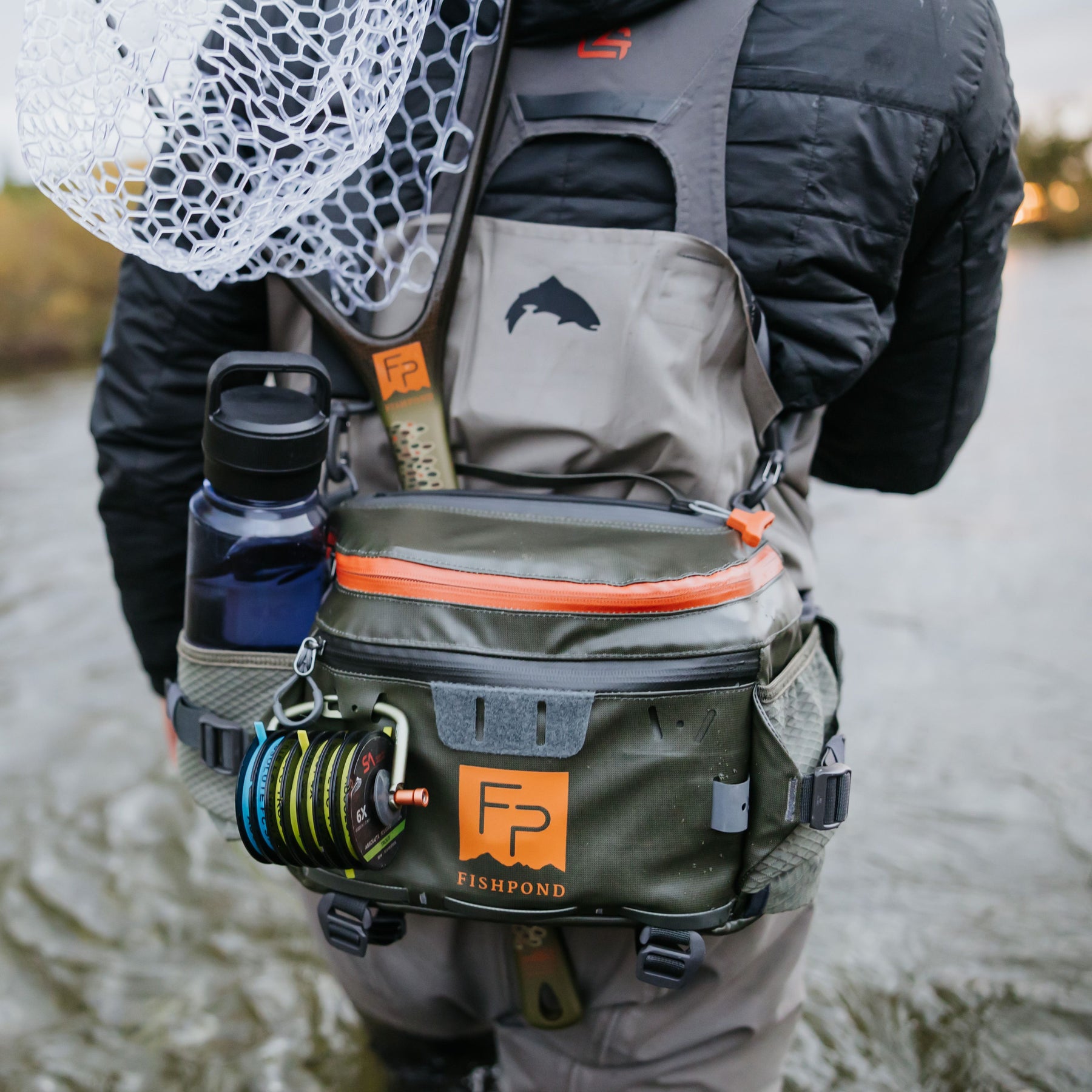 When the road less traveled leads you to untamed corners of the wilderness, it helps to bring gear that is just as rugged as the landscape you find yourself in. Enter the Stormshadow Lumbar Pack—meticulously designed to conquer the elements and thrive in the most challenging environments. Built with waterproof fabric and coated zippers, this pack is designed for anglers who demand top-tier performance and unbeatable durability. An integrated waterproof pocket featuring the TRU Zip zipper guards your valuables against submersion, allowing you to explore with confidence. The top flap of the pack features integrated magnets, holding it open for hassle-free access to your gear. Behind a coated YKK AquaGuard® water-resistant zipper, you'll find a large storage compartment featuring a removable divider, with 8 liters of storage space for all the fly boxes and accessories you'll need. Integrated water bottle holders, exterior accessory attachment points, a net slot, and hip belt stash pockets round out a platform that allows you to tackle whatever Mother Nature throws your way.