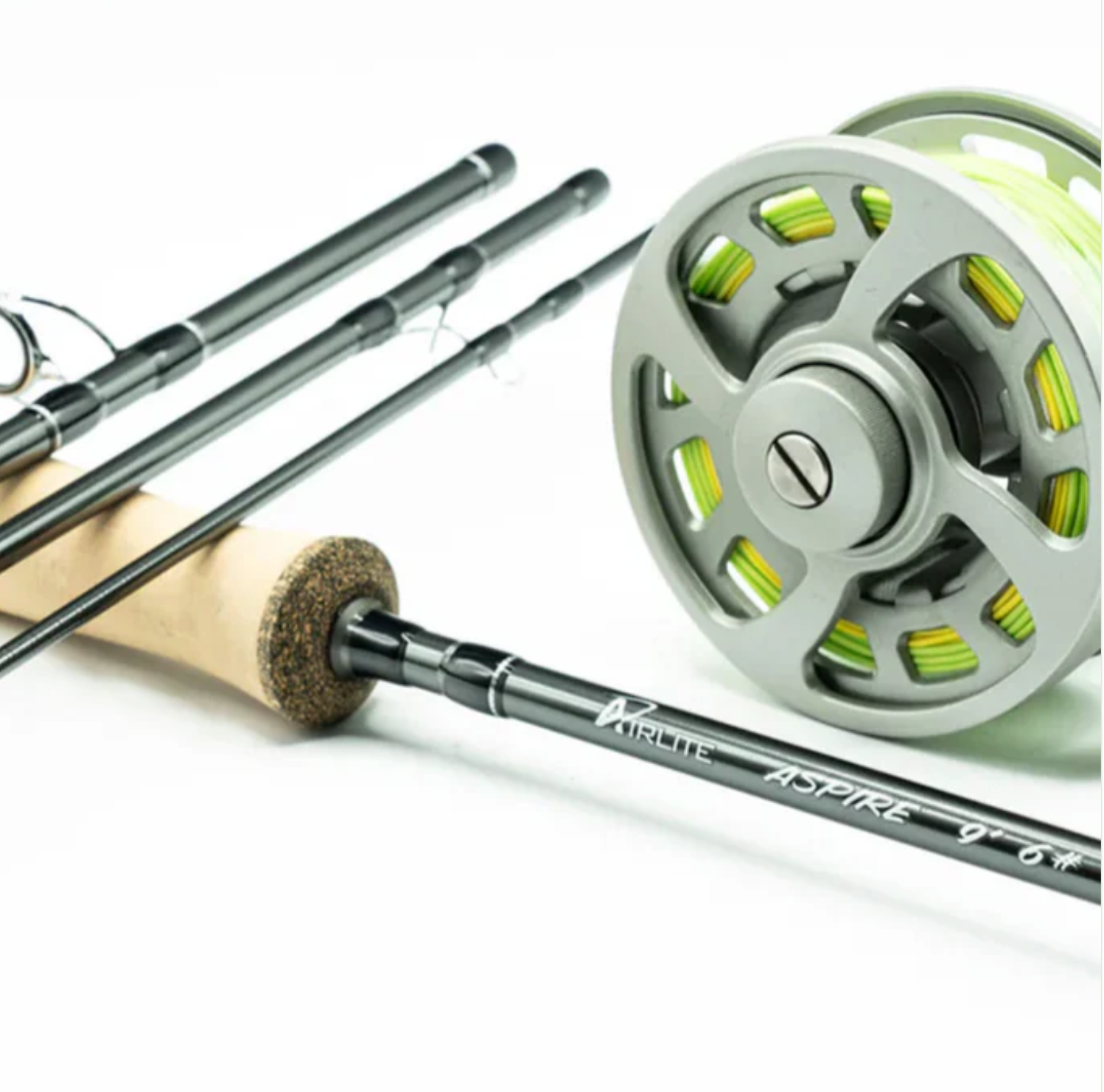 Each model includes a four-piece matte gray blank with a vintage white label and handwritten script, plus a black anodized aluminum uplocking reel seat with a cork insert. Outfitted with hard chrome snake guides, chrome stripping guides with silicone carbide inserts, and a cigar-style cork grip. Every Superfine Graphite Fly Rod comes with a cloth-covered rod tube and a printed rod sock.